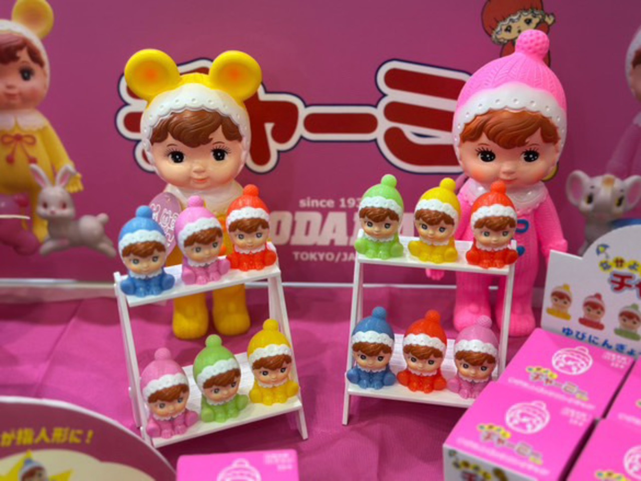 みんな大好きチャーミーちゃんの指人形がブラインドボックスになって登場です!アカ、イエロー、ミドリ、アオ、ピンク、シークレットの全6種類。スタンダードチャーミーちゃんと一緒に飾ってもいいし、ポンポンチャーミーちゃんのポンポン部分に被せてもかわいいのです。全種類集めて遊んでね!注)製造工程上、傷や汚れ、ペイントむら、外箱の痛みがある場合があります。また、インテリアアイテムとして販売しております。6歳未満のお子様にはお勧め出来ません。